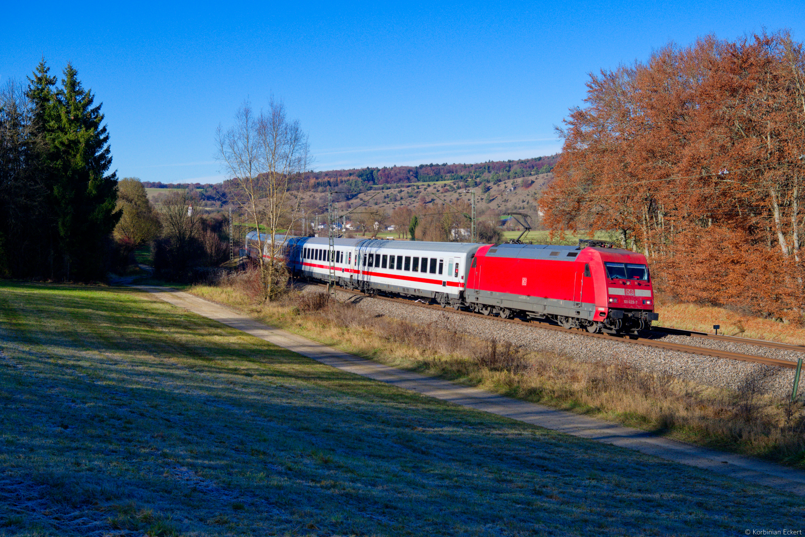 101 059 (9180 6101 059-4 D-DB) hat einen InterCity am Haken und wird in wenigen Augenblicken den Bahnhof von Haltern am See passieren. (15.06.2010)