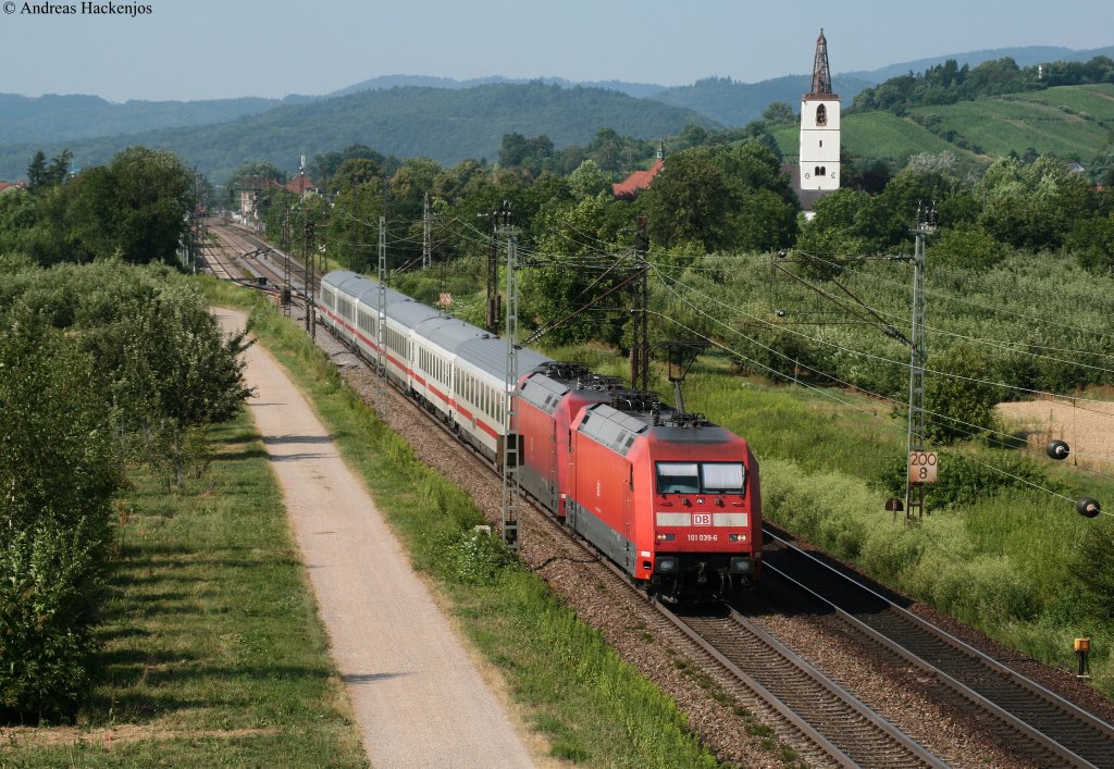101 039-6 und 122-0 (kalt) mit dem IC 2100 (Nürnberg Hbf-Basel SBB) bei Denzlingen 14.7.10. Der Zug war 70 Min im +