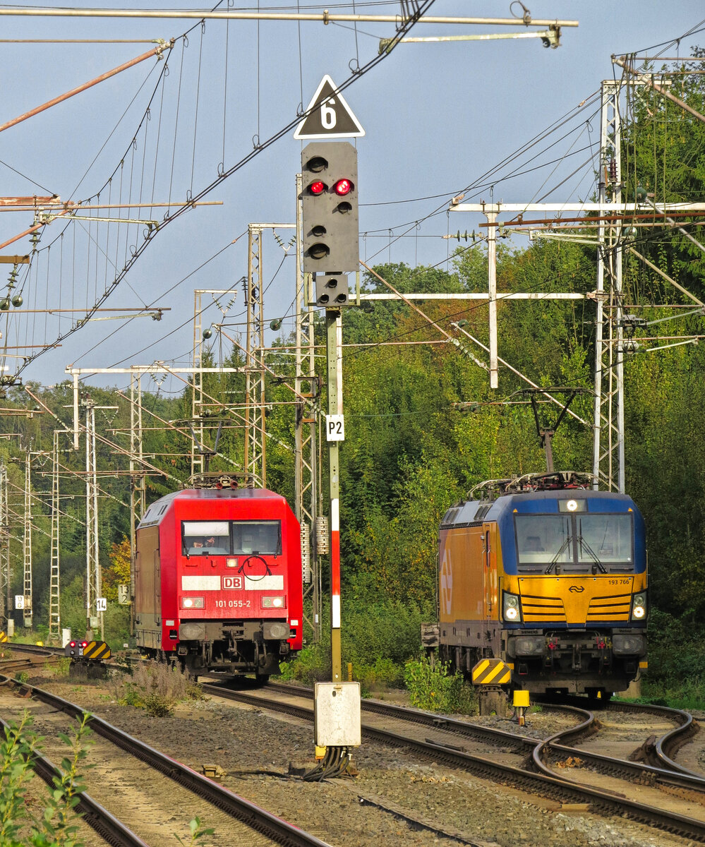 IC 119 nach Innsbruck auf der Verbindungskurve von Heidelberg auf die Hochgeschwindigkeitstrecke in Richtung Stuttgart. Dieser Abzweig ist zweigeleisig und an beide Bahnstrecken kreuzungsfrei angebunden, während die "Müllkippenkurve" nur eingleisig ist. In Richtung Karlsruhe müssen dort auch die Gegengleise aus Mannheim und Heidelberg gequert werden.