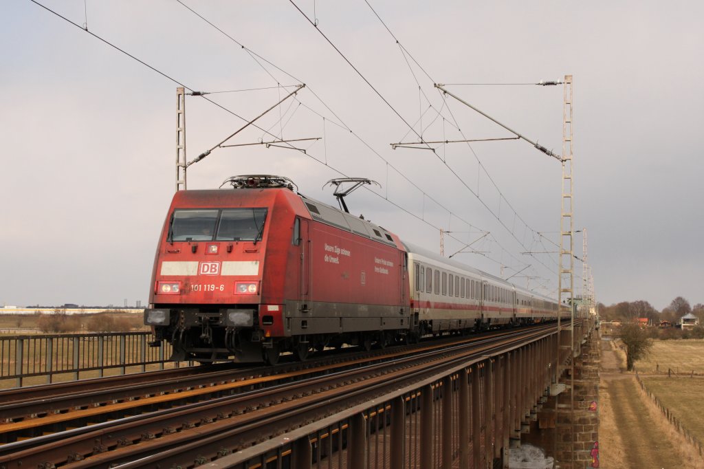 101 119-6 am 31.03.2013 auf der Weserbrücke in Dreye.