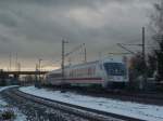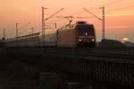 101 049 zusammen mit einer ihrer Schwesterloks unterwegs mit dem IC2311 aus Westerland zur Fahrt nach Köln im letzten Licht des 21.11.25 in Sythen