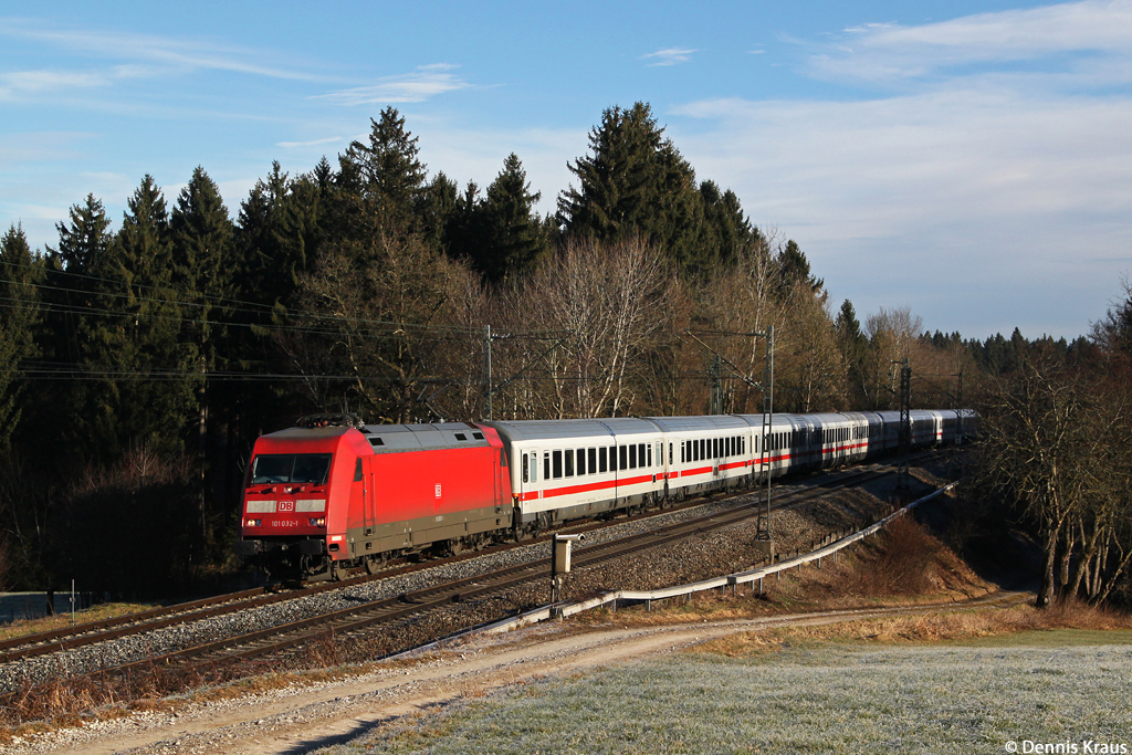 101 032 mit EC 218 am 28.12.2013 zwischen Bergen und Übersee.