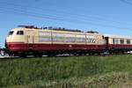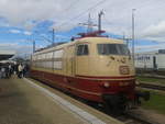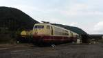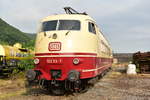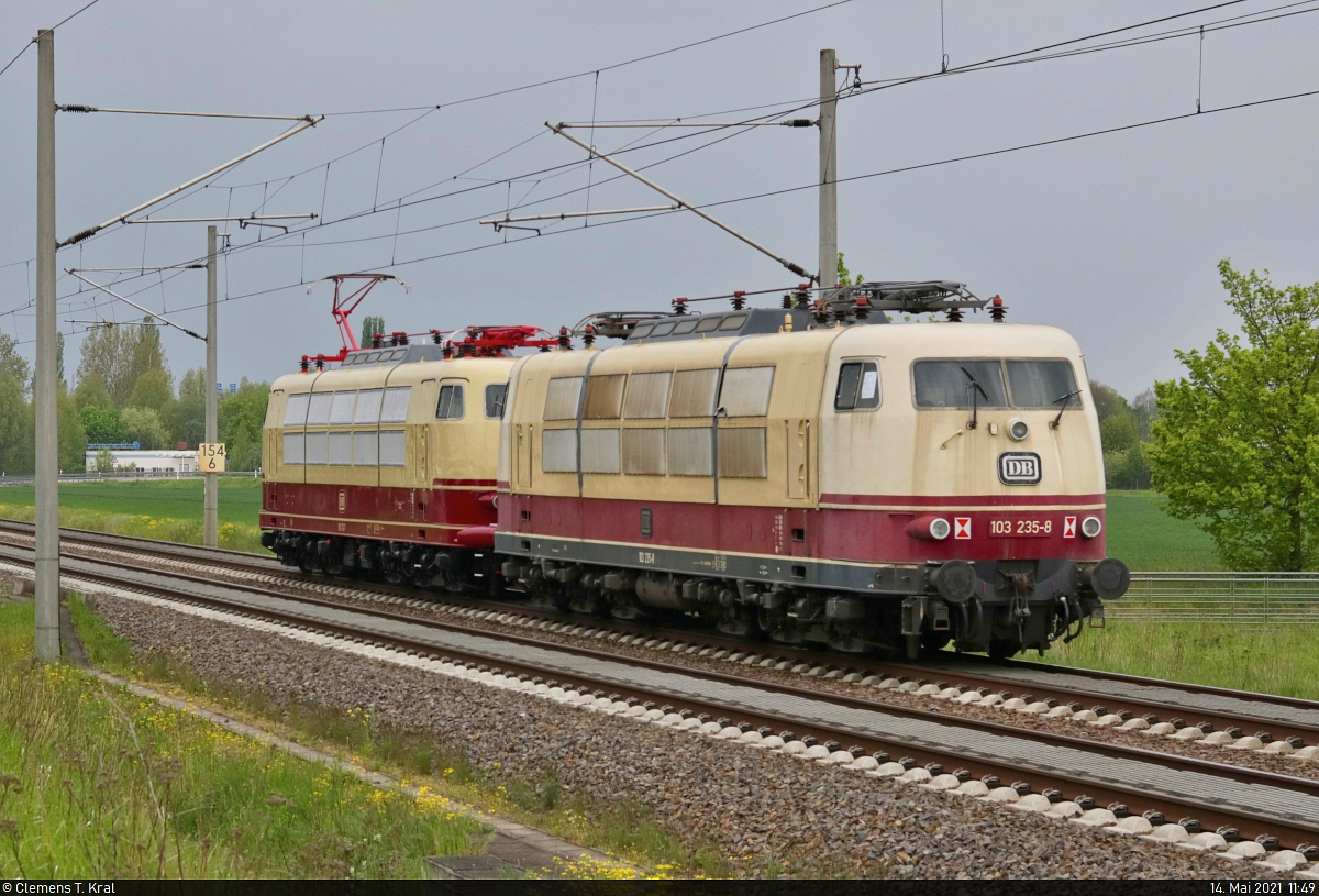 Nachschuss in Peißen, Straße des Friedens, auf die nicht betriebsfähige 103 235-8, die mit 103 113-7 vom Ausbesserungswerk (Aw) Dessau zurück ins DB Museum Koblenz gebracht wird. Wegen Teilemangels fungiert die Lok als Ersatzteilspender für betriebsfähige Exemplare.