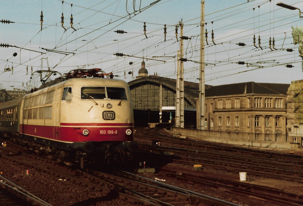 103 147 erreicht mit ihrem IC von München nach Berlin am 16.9.95 Hockeroda. Links ist die Ausfahrt der Nebenbahn nach Blankenstein noch mit einem Formsignal gesichert.