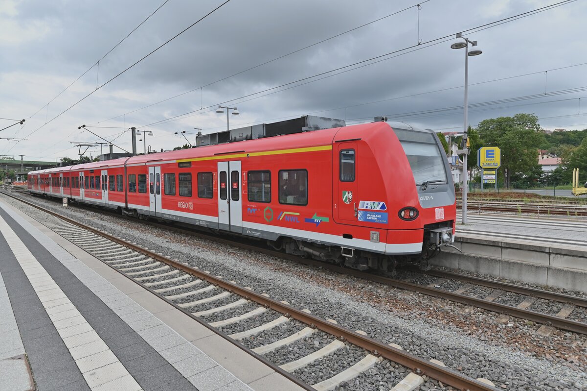 Vom Bahnsteig einen Nachschuß auf die 111 050-1 die einen Dostock aus Würzburg nach Osterburken gebracht. Nach einer längeren Wartezeit fährt sie dann wieder zurück.