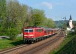 Am 17.9.08 wartete 111 068 mit drei modernisierten „Silberlingen“ in Donauwörth vor dem Empfangsgebäude.