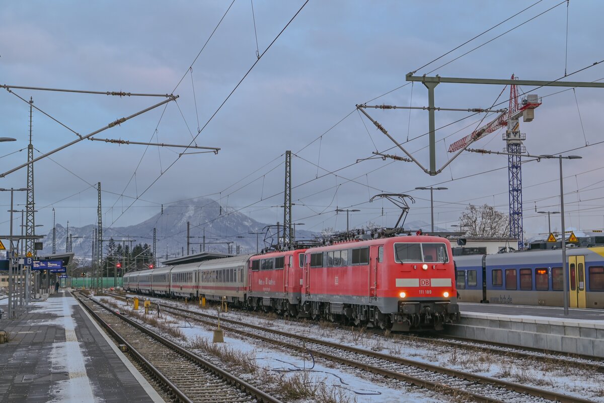 111 189 und 111 067 mit IC 2083 "Königsee" in Freilassing am 3.1.2025