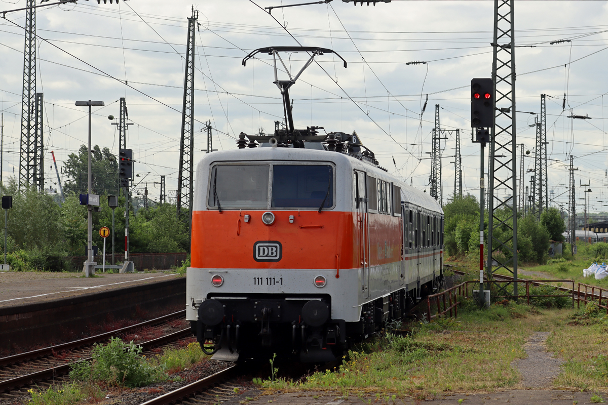 DB 111 174-9  Elfriede   Miete oder kaufe mich.  mit RE13-Ersatzzug in Wuppertal, November 2025.