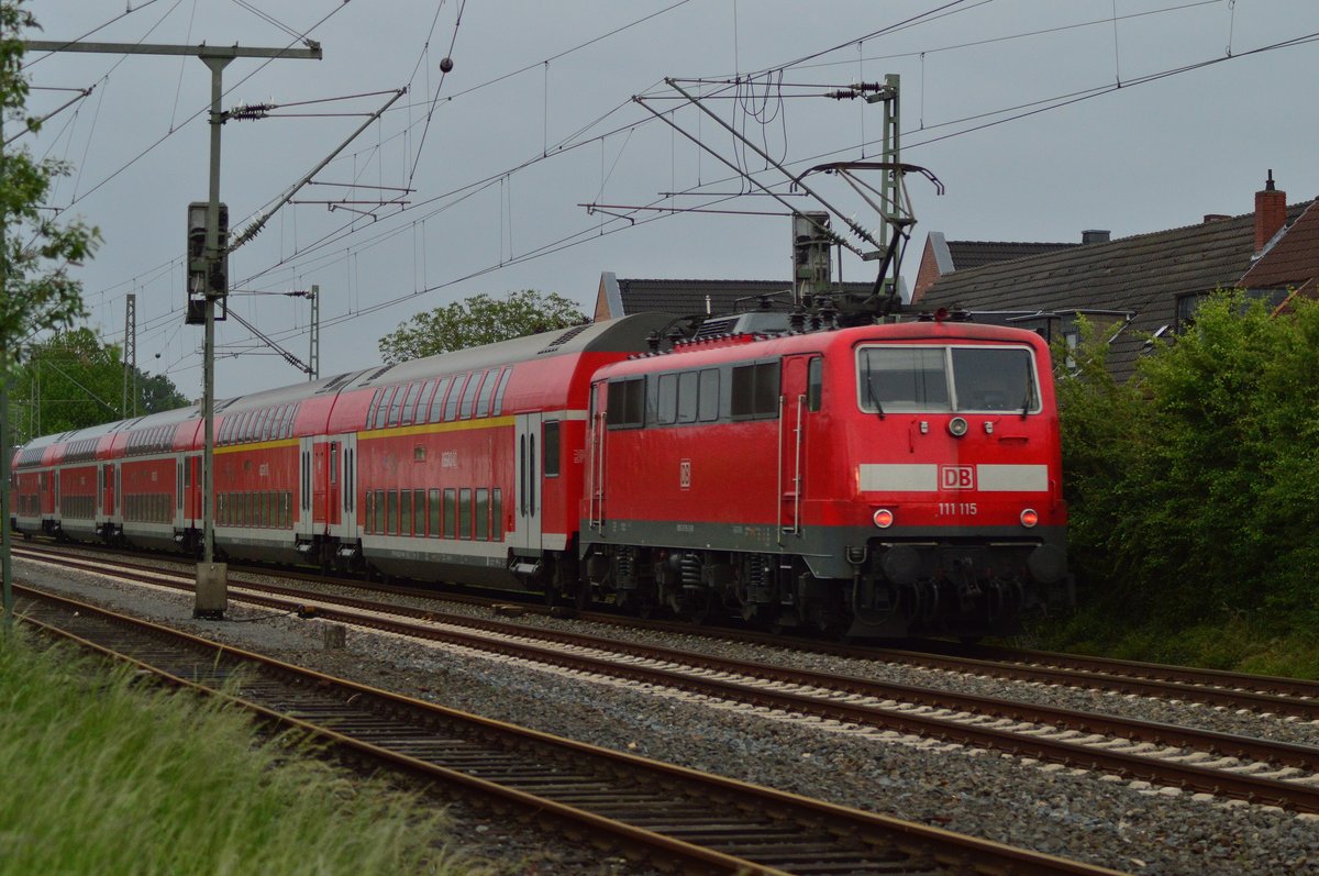Am Abend des 24.Mai 2016 schiebt die 111 115 einen RE4 nach Dortmund.