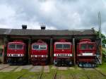 243 822-4 EBS, 250 250-8 TEV, 243 936-2 FWK und 243 117-9 DB waren am 01.06.19 beim Eisenbahnfest im Bw Weimar zu sehen.