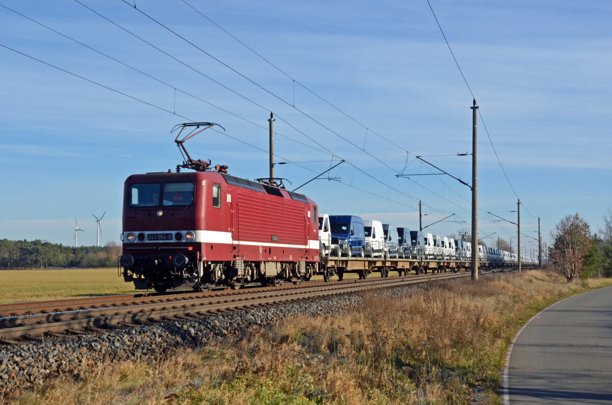 Auf der Hochfelder Eisenbahnbrücke zog die DeltaRail-Elektrolokomotive 243 069-3 (gemeinsam mit 143 009-9) einen Kesselzug Richtung Rheinhausen. (Duisburg, August 2022)