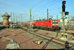 Die konventionell lackierte 143 250 mit einer gegenwärtig durch Bauarbeiten verkürzten Flughafen-S-Bahn bei der Anfahrt in Dresden-Hauptbahnhof im März 2026