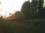 143 351 mit Schwesterlok und drei Dosto-Wagen auf Überführungsfahrt am 11.06.2008 Höhe Peine