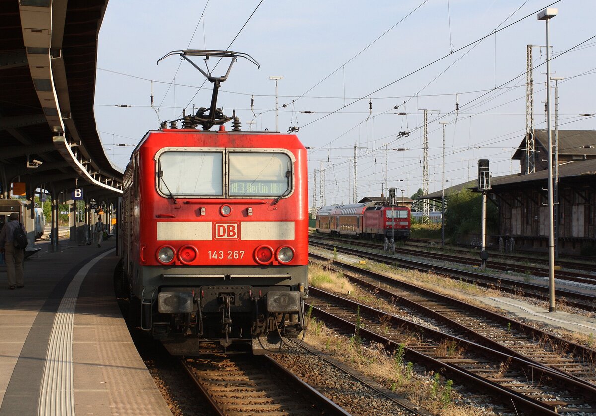 Am 08.07.2025 stand 143 967 mit 2 Doppelstockwagen an Gleis 4 des Dresdener Hauptbahnhofes