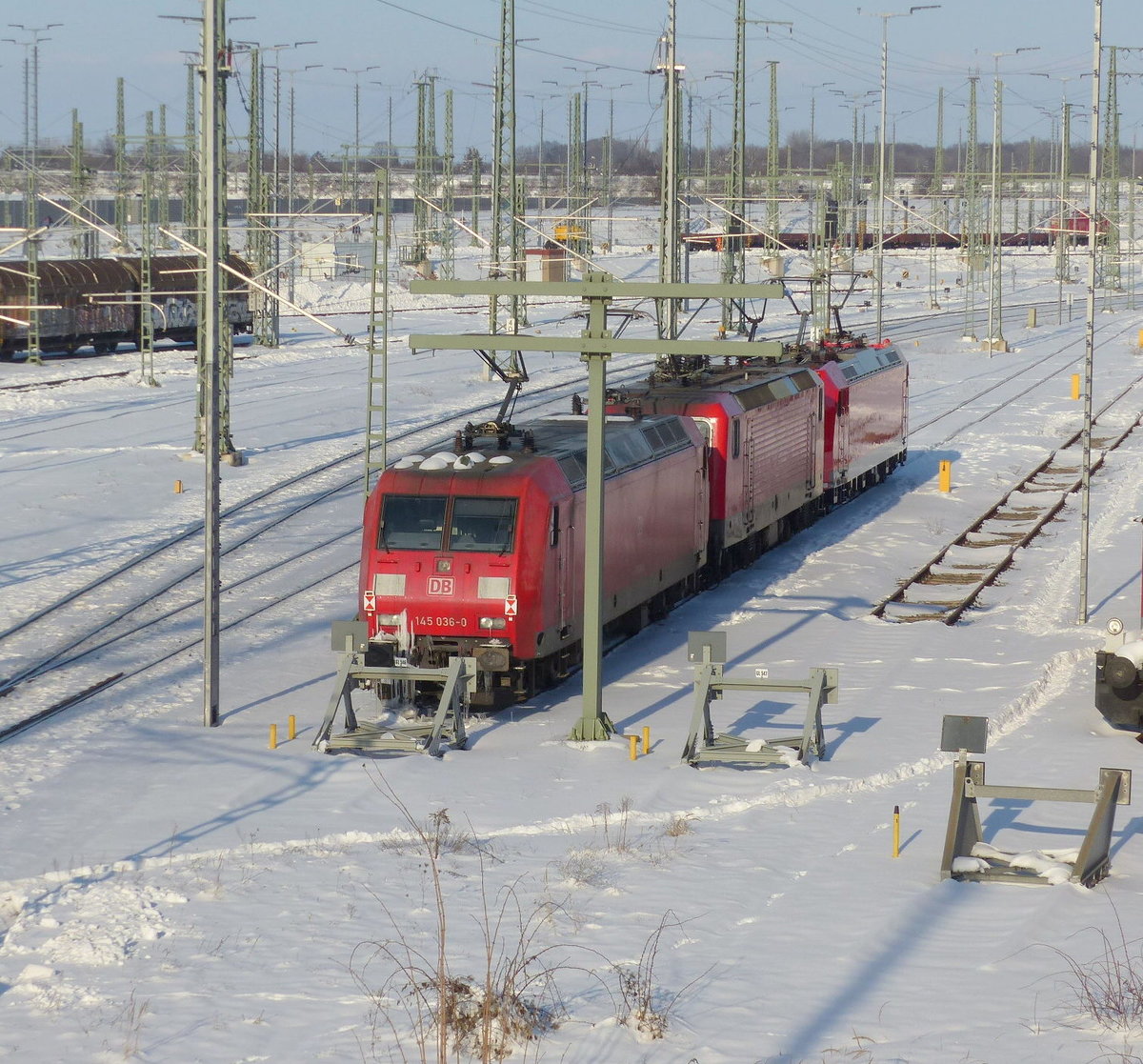 DB 145 036-0 am 12.02.2021 bei DB Cargo in Halle (S).