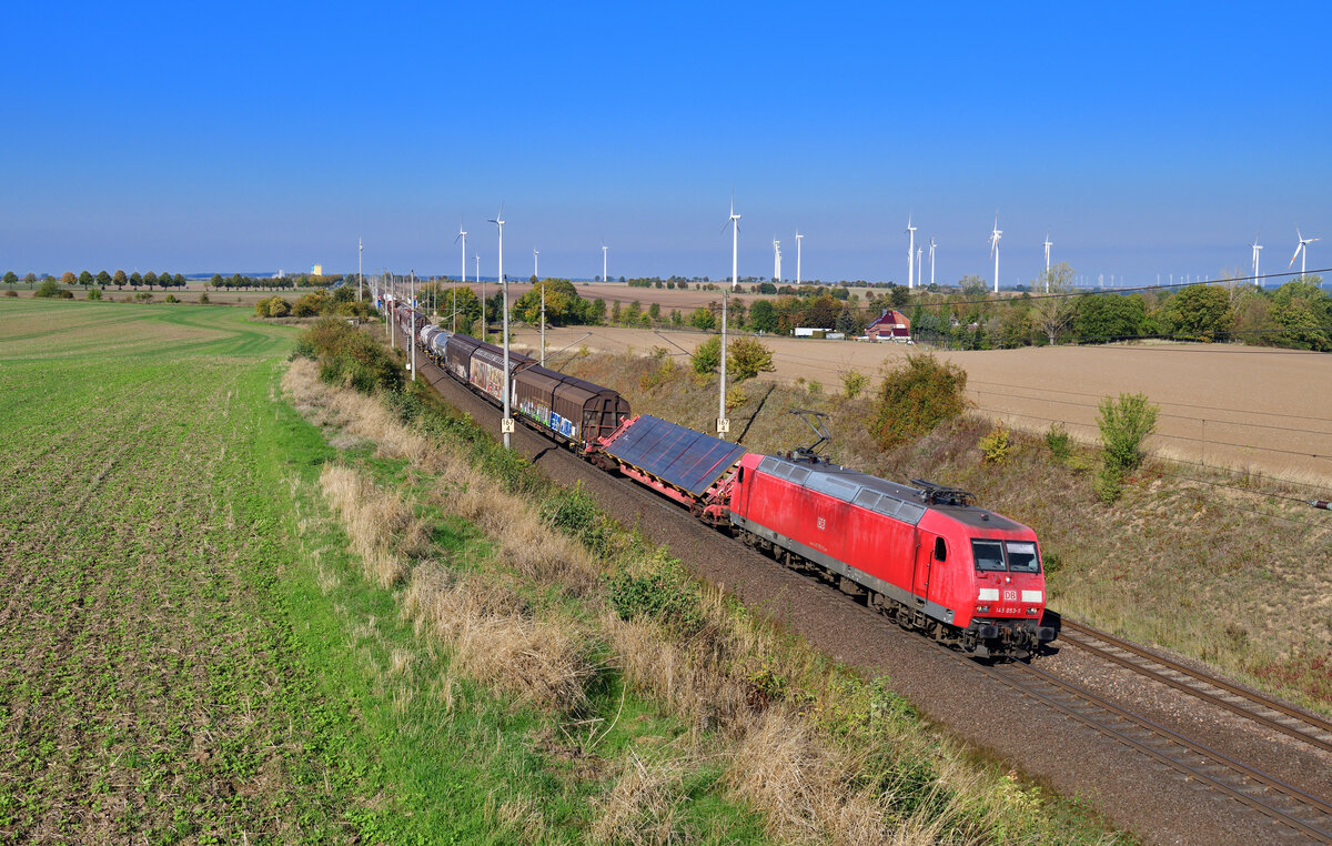 145 053 mit einem Güterzug am 30.09.2022 bei Ovelgünne.