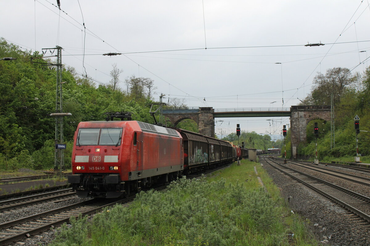 DB 145 041-0 mit einem gemischten Güterzug Richtung Göttingen, am 20.05.2023 in Eichenberg.