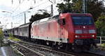Eine unbekannt gebliebene 145 von DB Cargo mit einem gemischten Güterzug bei Gambach Richtung Würzburg, 07.10.2021
