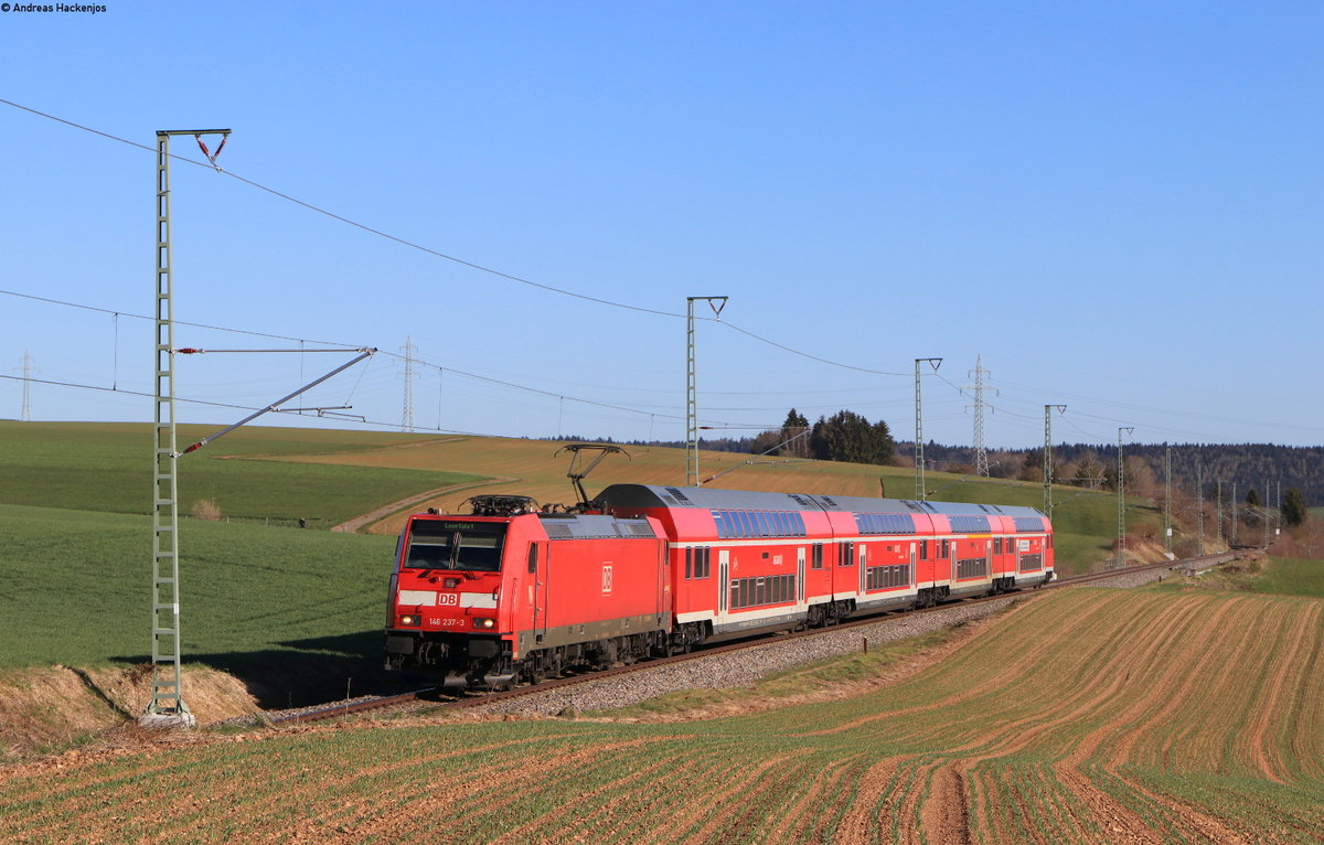 146 237-3 "Karlsruhe" mit dem Lr 70680 (Villingen(Schwarzw)-Freiburg(Brsg)Hbf) bei Bachheim 23.4.21