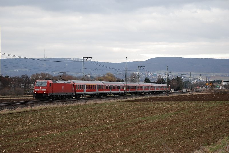 146 224-1 ist mit dem RE 19458 nach Stuttgart Hbf unterwegs. Aufgenommen am 27.02.08 bei Aalen-Essingen.