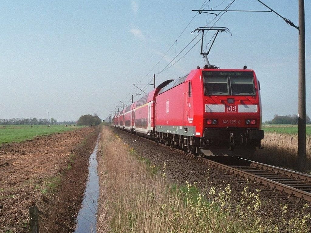 Winterwonderland in Niedersachsen. 146 266 befindet sich am 11.01.2026 mit ihrem 10 Minuten verspäteten RE1 und einer dicken Eisschicht am Bahnhof Eystrup auf dem Weg nach Hannover Hbf. DerBahner