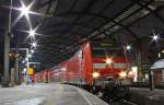 Gerade verlässt ein RE2 nach Düsseldorf Bösensell geschoben von der 146 006-2. 8.3.2015
