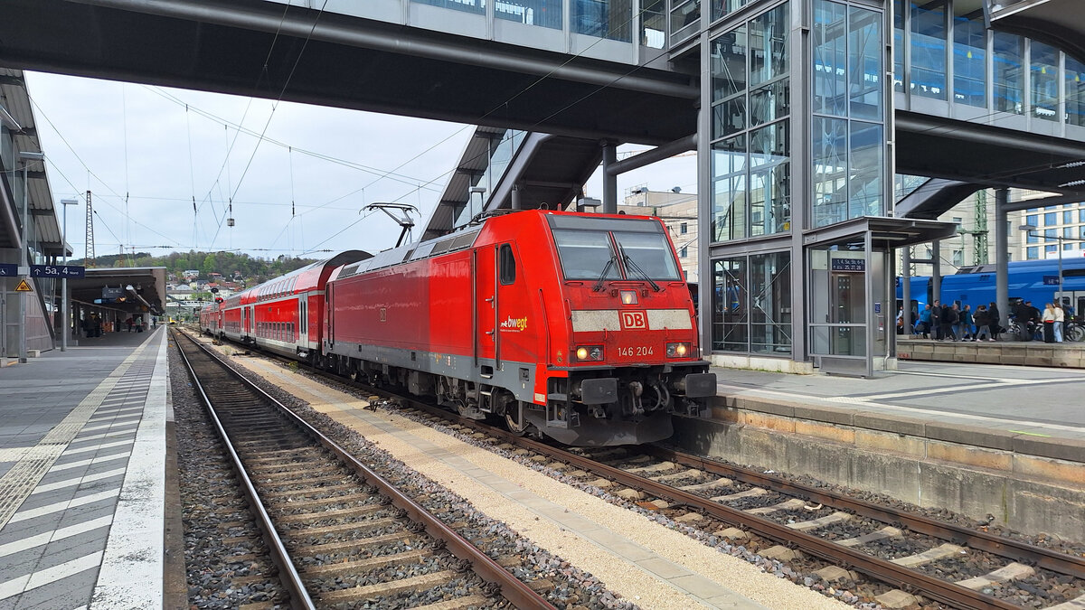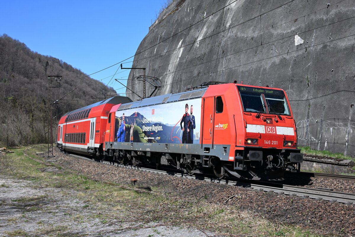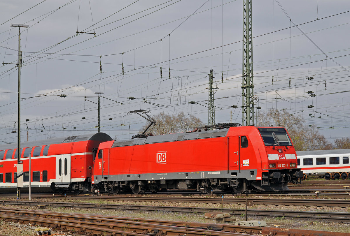 DB Lok 146 237-3 fährt beim Badischen Bahnhof ein. Die Aufnahme stammt vom 04.04.2016.