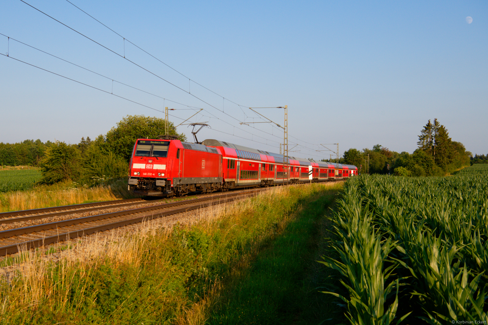 Am Nachmittag des 19. Juli 2025 schob die 146 255 den RE 4516 von Frankfurt am Main HBF nach Bebra durch das osthessische Haunetal. Bei Hermannspiegel konnte ich den Regionalzug mit der Ortschaft Hauneck im Hintergrund aufnehmen. Seit Fahrplanwechsel sind diese Zugläufe bis Bad Hersfeld gekürzt.
