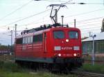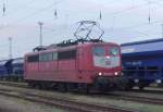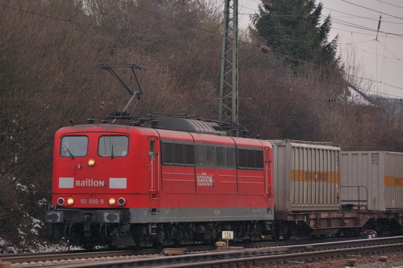 In der süd-östlichen Einfahrt von Treuchtlingen kam 151 056-9 mit Containerzug, aus Richtung Ingolstadt, des Gleises daher. (11/2008).