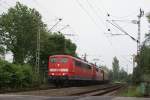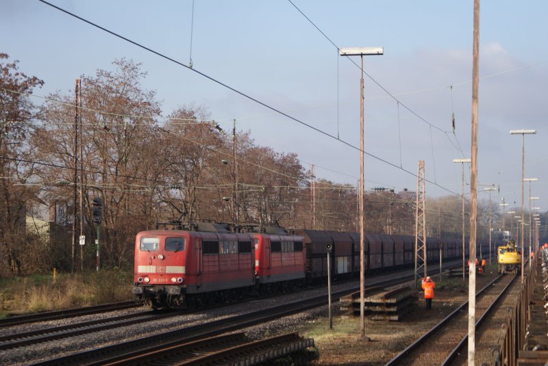151 001-5 + 151 xxx-x mit einem Kohlezug in Hilden am 7.12.2008