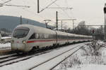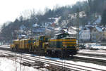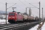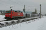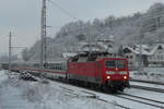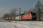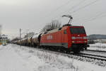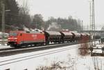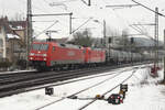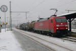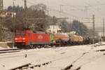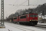 07. Januar 2011, Lok 152 042 fährt mit einem Güterzug aus Richtung Saalfeld durch den Bahnhof Kronach.