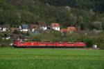 Aus dem Gegenlicht kommt die 152 075-8 mit dem Audizug am Mittag des 1.3.2021 durch Neckargerach gen Heidelberg.