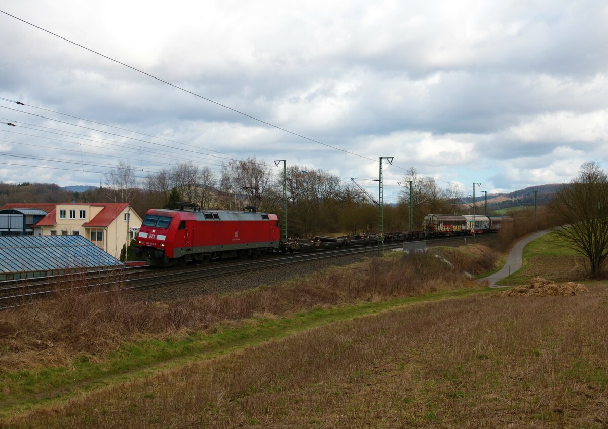 DB Cargo 152 076-6 mit einen Mischer am 19.02.22 in Hösbach (Landkreis Aschaffenburg)