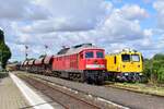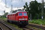 232 079 mit einem Militärzug, aus Torgelow Drögeheide, beladen mit Dingos. Der Zug fuhr über Stralsund nach Rostock Seehafen.  Ferdinandshof 03.07.2019
