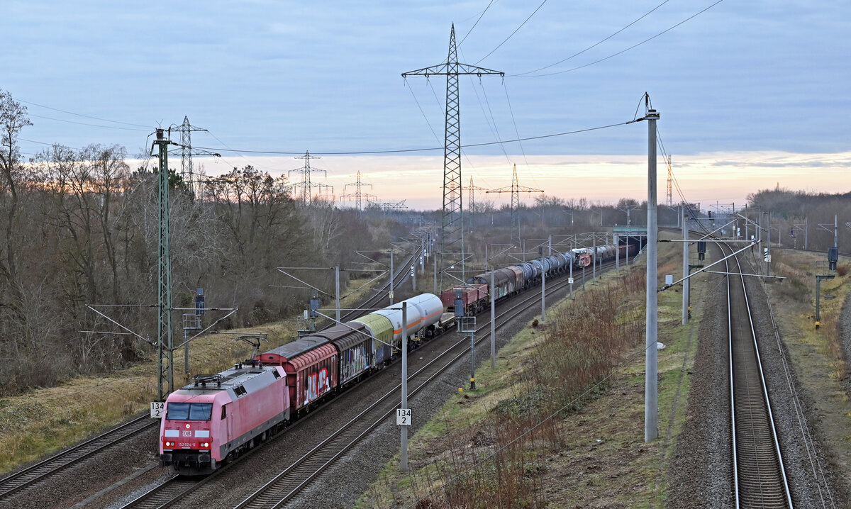 Warum nicht mal bei Regen fotografieren ? Hier zu sehen die 152 166 mit der 155 079 und einer 185 beim verlassen des Rostocker Seehafens am 10.08.07