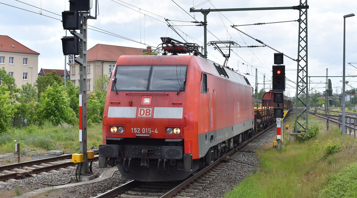 DB Cargo AG [D] mit der Doppeltraktion "152 131-9" [NVR-Nummer: 91 80 6152 131-9 D-DB] + "152 159-0" [NVR-Nummer: 91 80 6152 159-0 D-DB] und dem entleerten Erzzug aus Ziltendotf EKO Richtung Hamburg am 30.12.22 Durchfahrt Bahnhof Berlin Hohenschönhausen.