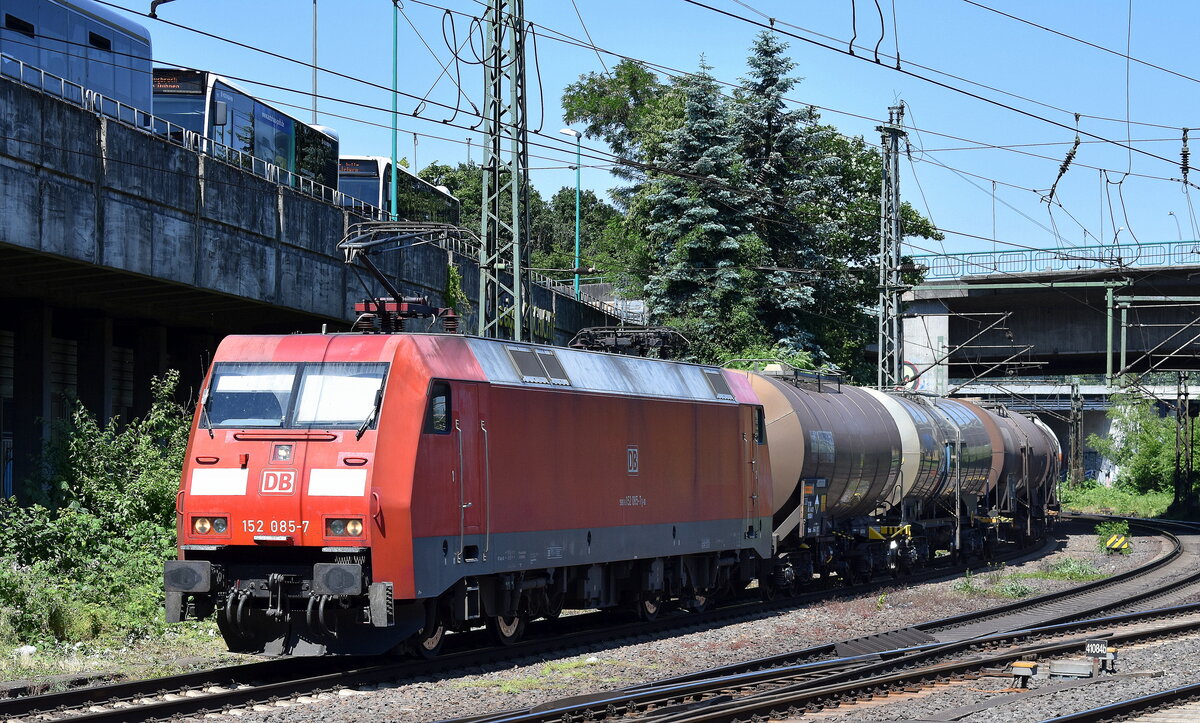 DB Cargo AG [D] mit ihrer  152 085-7  [NVR-Nummer: 91 80 6152 085-7 D-DB] und einem Kesselwagenzug am 13.06.23 Vorbeifahrt Bahnhof Hamburg-Harburg.