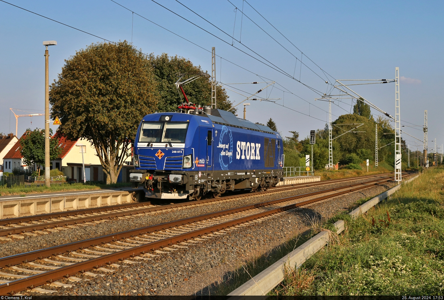 Nach einem Halt am Blocksignal Zscherben setzt sich 152 028-7 (Siemens ES64F) als Tfzf wieder in Bewegung, sodass es weiter Richtung Teutschenthal gehen kann. Leider hatte der Tf etwas bzw. sich zu verbergen.