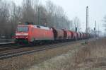 152 157 DB Cargo mit einem langen Kesselzug bei Triesdorf Richtung Ansbach, 19.07.2021