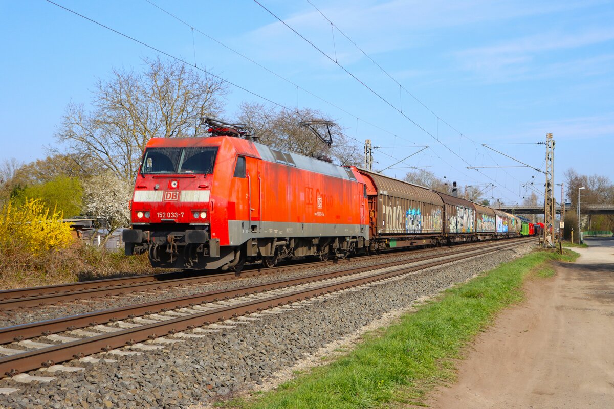 Am 28.12.2025, bei Ahresndorf, fuhr 152 006 mit dem DHL-Zug (Postzug) aus Großbeeren, in Richtung Saarmund, auf dem Berliner Außenring.