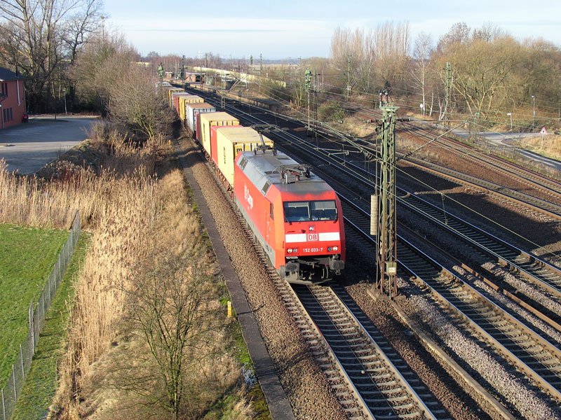 152 033 mit einem Containerzug bei Stelle, 12.01.2009