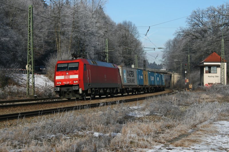 152 132 mit einem Containerzug am 17.01.2009 in Aßling.