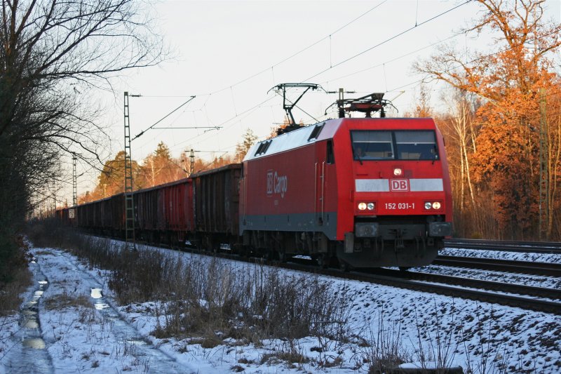 152 031 mit einem Ganzzug am 24.01.2009 in Haar (bei München).
