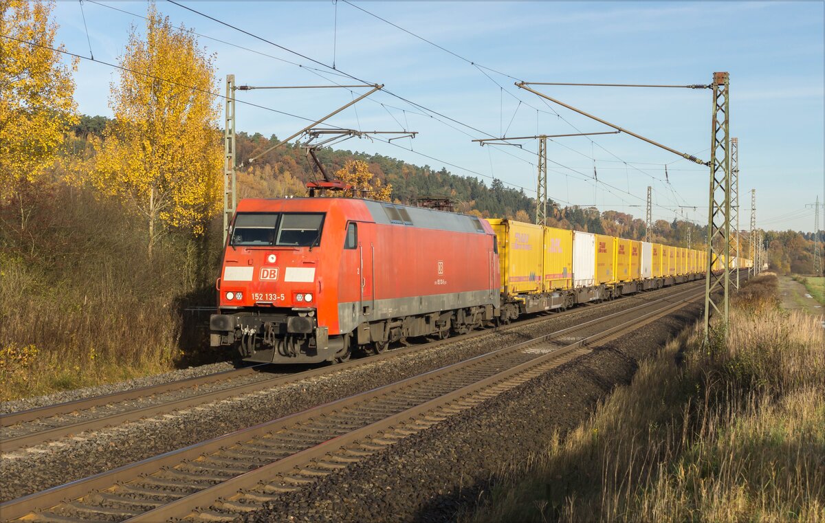 152 133-5 mit einem DHL-Zug am 05.11.2025 bei Kerzell.