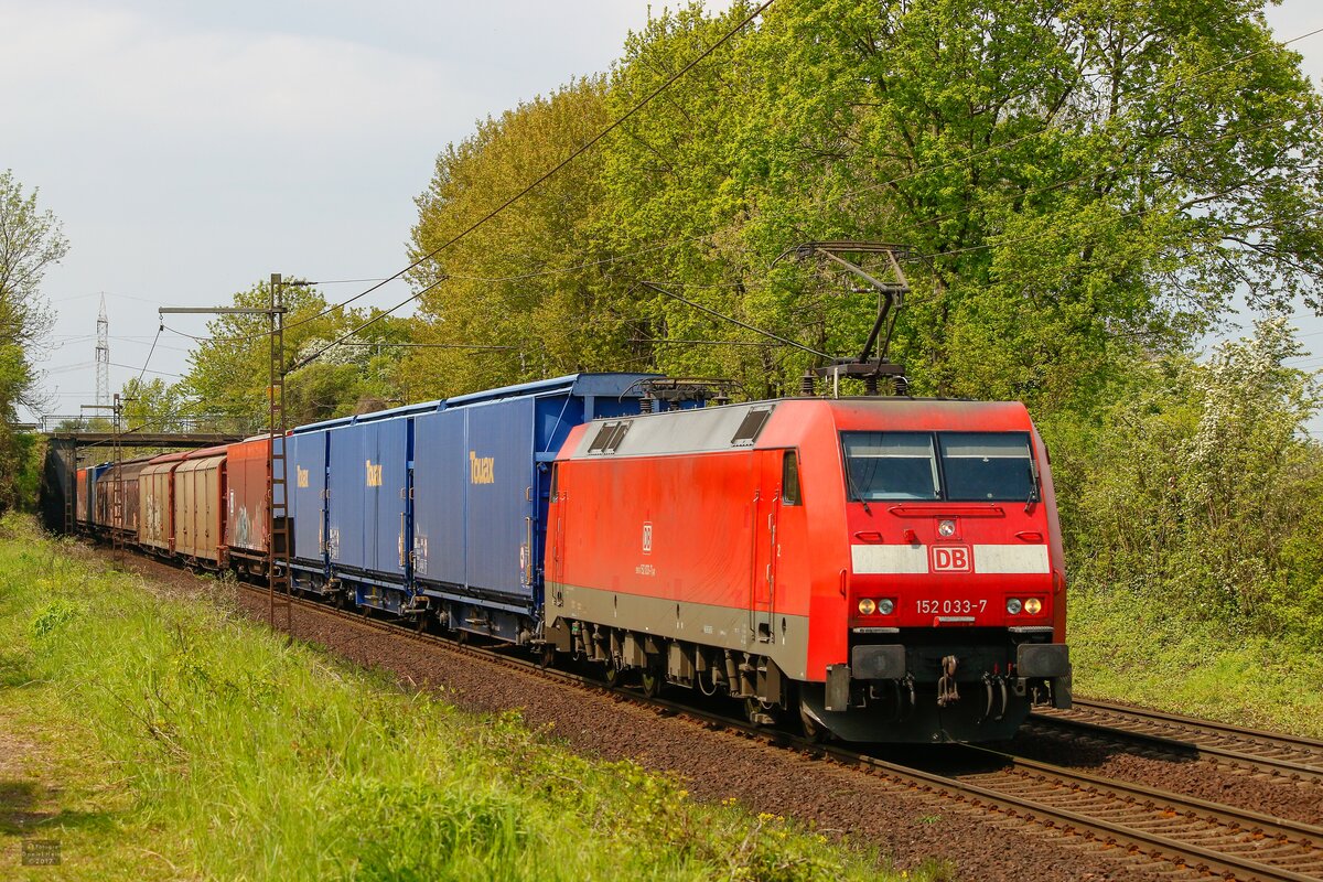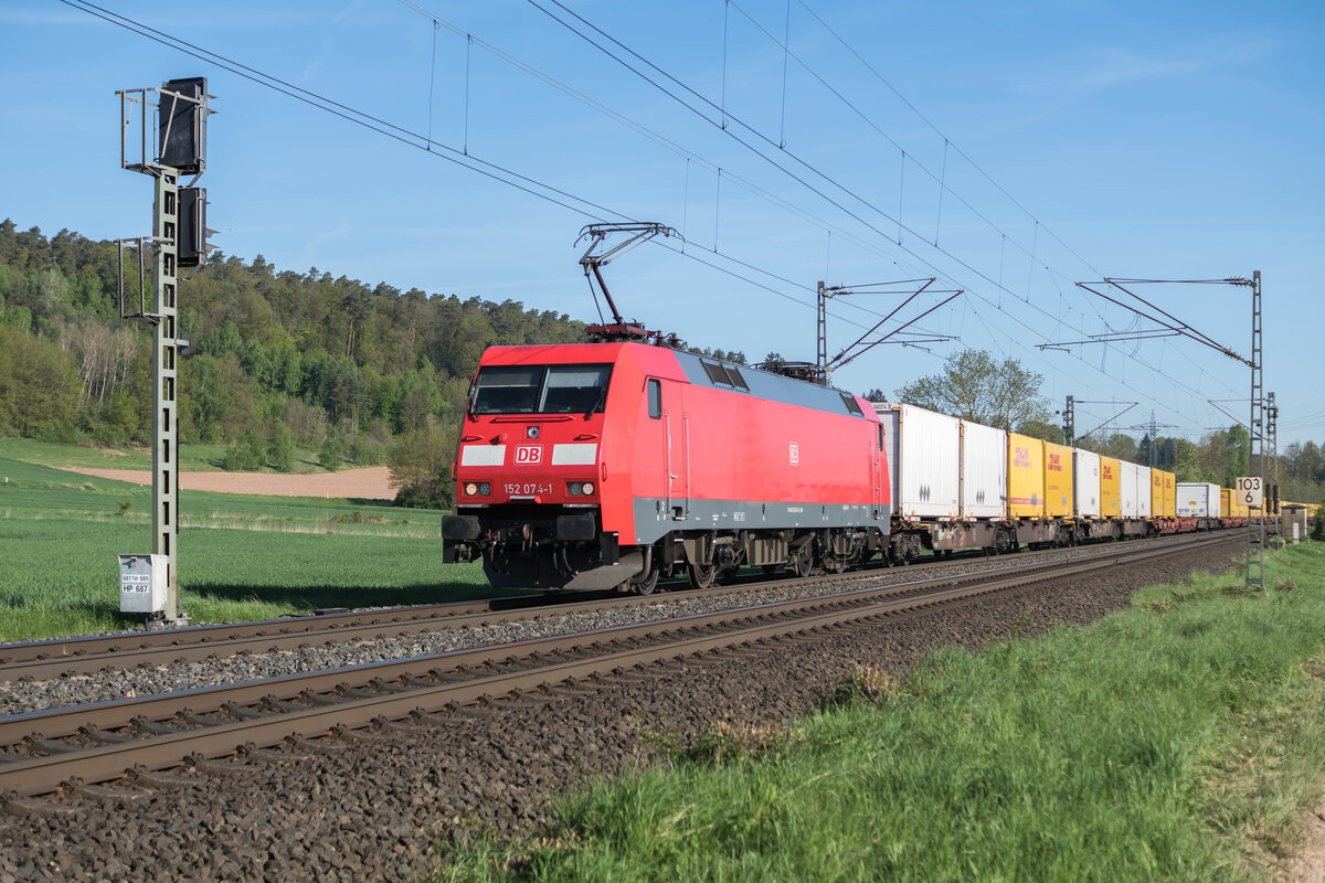 Eine unbekannt gebliebene 152 von DB Cargo mit einem gemischten Güterzug bei Gambach Richtung Würzburg, 07.10.2021