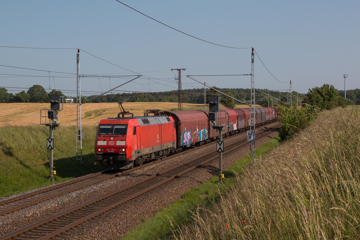 Die 152 123 mit einem Containerzug am 25.07.2014 unterwegs bei Kläham.