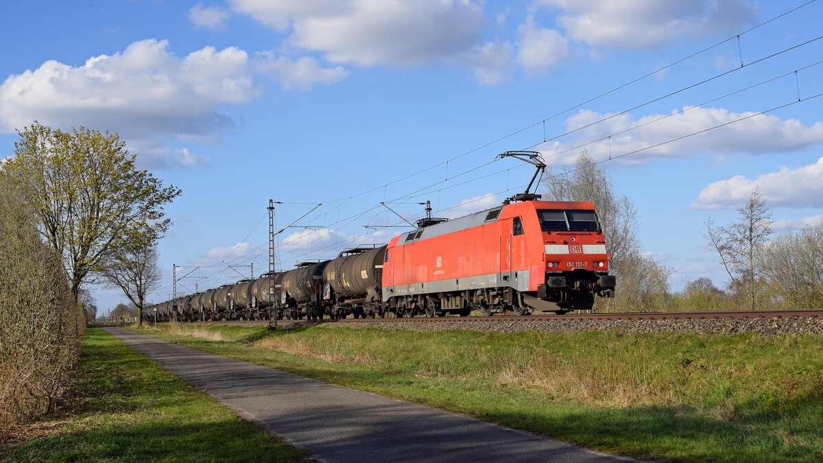 Deutschland Lok 152 098 von DBC zieht einem kürzem leerem Güterzug in Bottrop Cokerei Prosper 8/4/2026