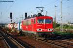 155 146-4 durchfährt mit FE 45503 von Sassnitz-Mukran nach Seddin am 15.05.2009 den Bahnhof Rambin.