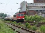 155 007 mit einem Ganzzug Tankcontainern. Beladen wurde dieser über das Wochenende in Anklam. Gefüllt wurden die Tanks mit Melasse. Das ist nichts weiteres als Zuckerrübensirup. Ferdinandshof den 27.04.2020