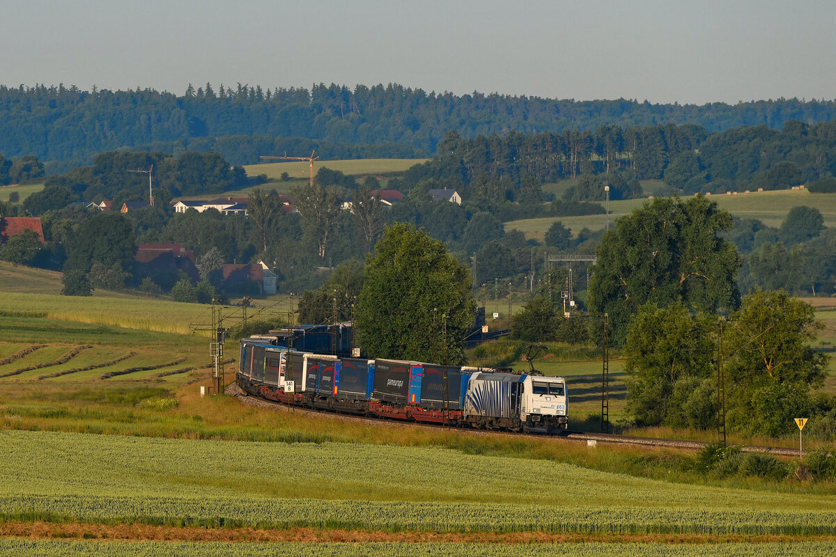 Täglich auf der Nord-Süd-Strecke zu beobachten sind die von Lokomotion traktionierten KLV-Züge für die Speditionen Paneuropa und Terratrans von und nach Norditalien. Am 20. Juni 2025 bespannte die 185 663 den DGS 43828 von Verona Q.E. nach Bremen Grolland ab München Ost. Am frühen Morgen konnte ich den wie üblich komplett beladenen Zug bei Meisenbach im osthessischen Haunetal aufnehmen. Zur Abwechslung kam hierbei einmal ein starkes Teleobjektiv zum Einsatz.